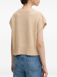 V-neck ribbed top Highlights - Beige - V-neck - Ribbed hem - Short sleeves - Square logo plaque Imported Composition Fabric 100% Washing instructions Read Manufacturer Guidelines
