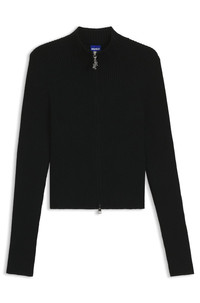 RIBBED CARDIGAN WITH LOGO-PULLER ZIP