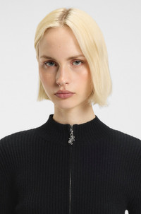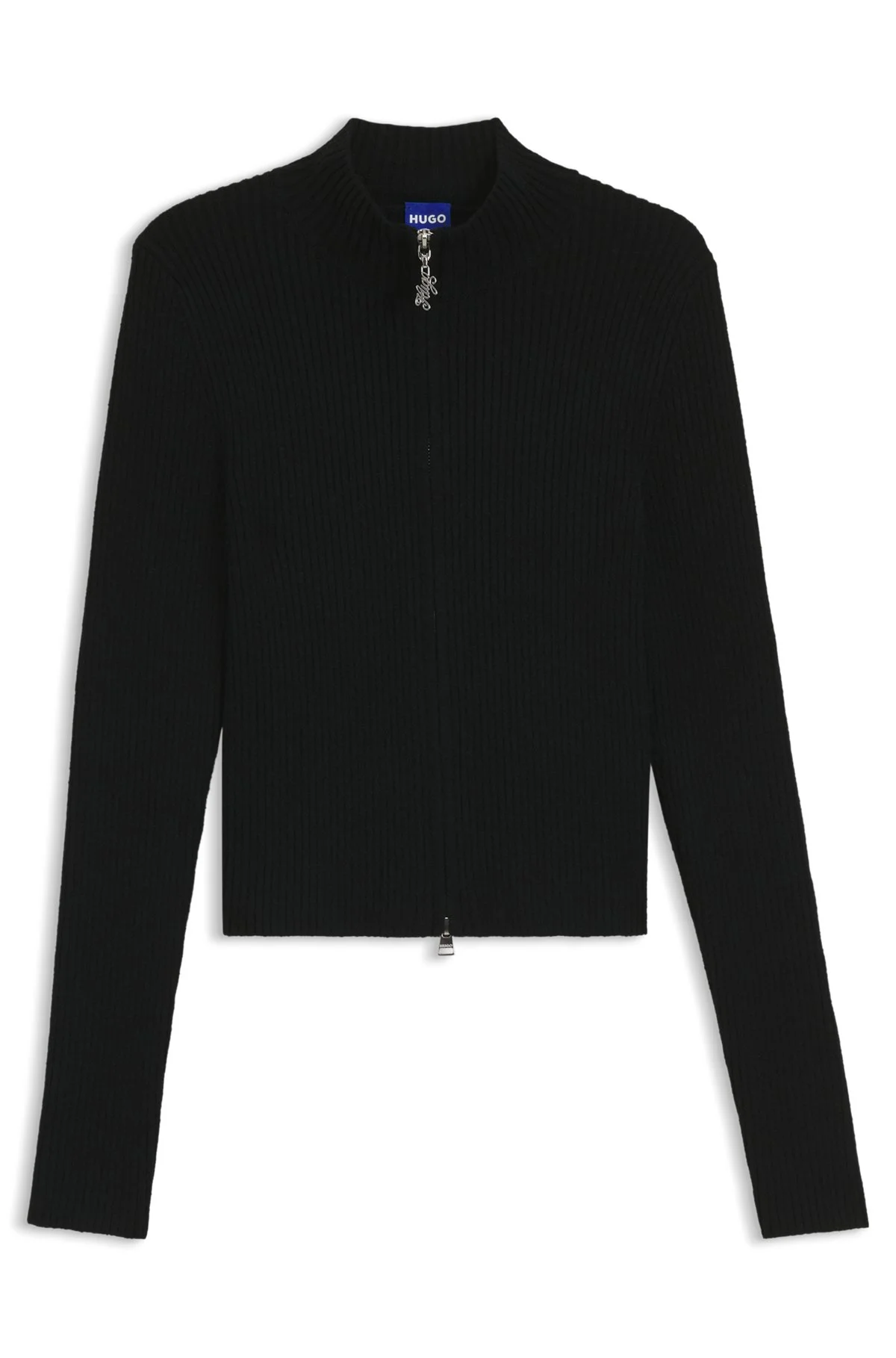 SIZE AND FIT The model wears a size S and is 5'10" tall with a, 32" chest, 24" waist and 35" hips. DETAILS With its soft ribbed knit and bodycon fit, this HUGO Womenswear cardigan makes an easy layer. Two-way zip with logo puller in handwritten style. Fit back length: 50 cm (20 inches) Sestry_B - 50548140 QUALITY & CARE INSTRUCTIONS Hand Wash Only Do Not Bleach Quality: 50% Viscose, 27% Polyester, 23% Polyamid Reduced Dry Clean Do Not Tumble Dry Do Not Iron