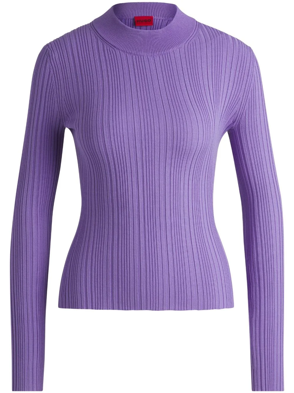 ribbed-knit jumper Highlights - Purple - Stretch-design - Ribbed knit - Crew neck - Long sleeves - Straight hem Imported Composition Viscose 76%, Polyamide 24% Washing instructions Read Manufacturer Guidelines