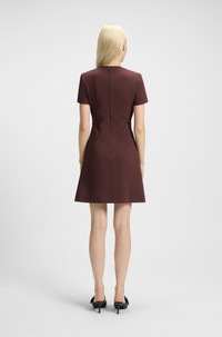 SIZE AND FIT The model wears a size 4 and is 5'10" tall with a, 32" chest, 24" waist and 35" hips. DETAILS Kilame - 50542643 Easy to style up or down, this HUGO Womenswear dress is made in comfy stretch fabric. Straight shoulder with subtle padding. Deep skirt pleat. Regular fit Neckline: Crew neck Fastening top: Zip closure Short sleeves No cuffs Pleat front No vent Fully lined Fit back length: 90 cm (35 inches) QUALITY & CARE INSTRUCTIONS Do Not Tumble Dry Iron Low Heat Do Not Wash Do Not Bleach Quality: 71% Polyester (41% recycled), 22% Viscose, 7% Elastane, Lining: 100% Polyester Dry Clean Only
