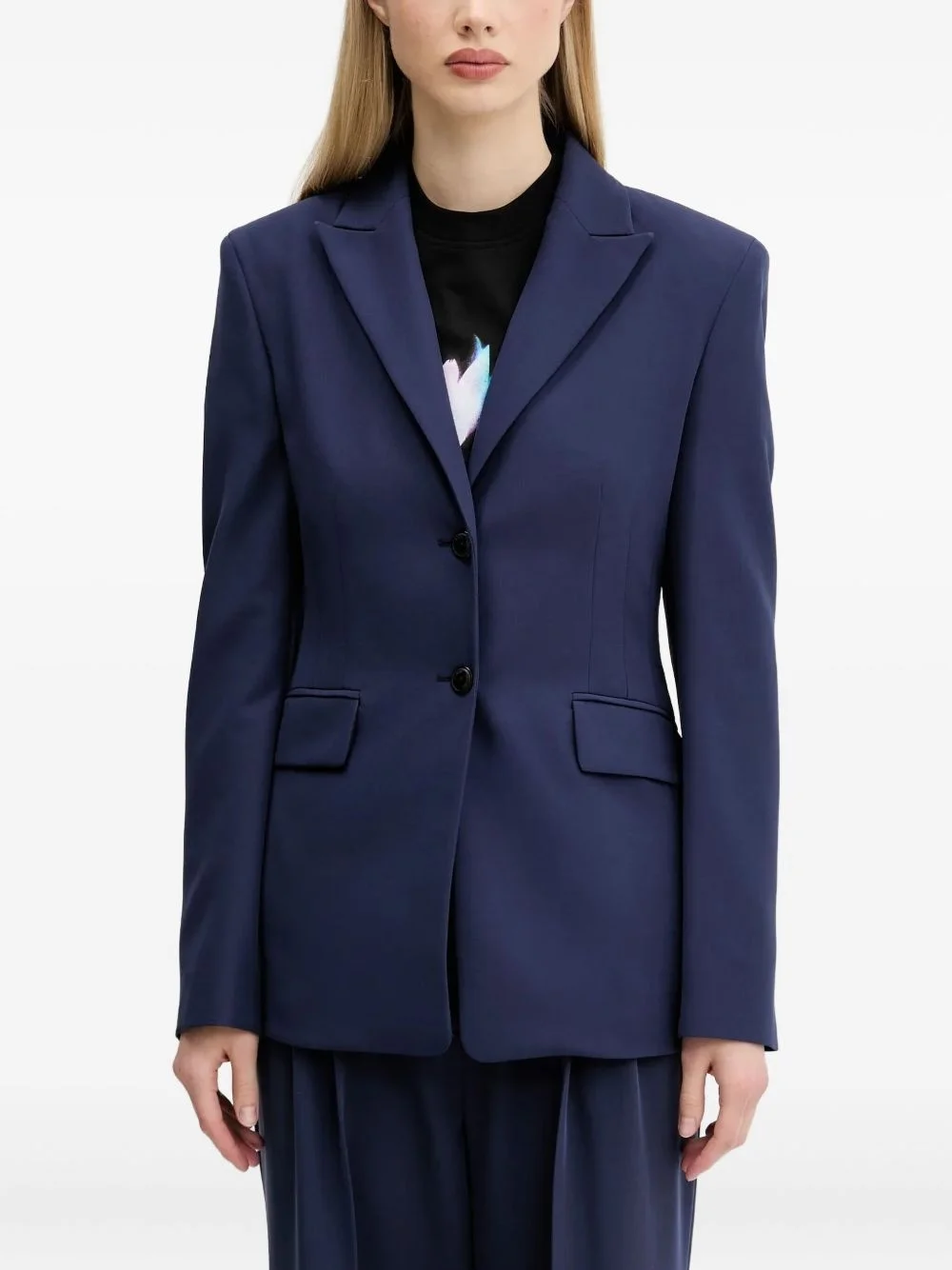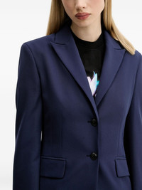 single-breasted structured blazer Highlights - Dark blue - Peak lapels - Two-button fastening - Structured shoulders - Welt flap-pockets - Straight hem Imported Composition Polyester 88%, Spandex/Elastane 12% Washing instructions Read Manufacturer Guidelines