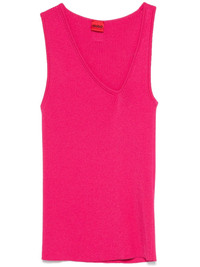 sleeveless asymmetric V-neck knitted top Highlights - Fuchsia pink - Ribbed knit - Asymmetric v-neck - Sleeveless - Logo patch to the rear - Unlined - Straight hem Imported Composition Viscose 68%, Polyamide 32% Washing instructions Machine Wash