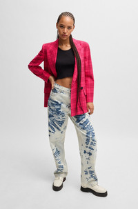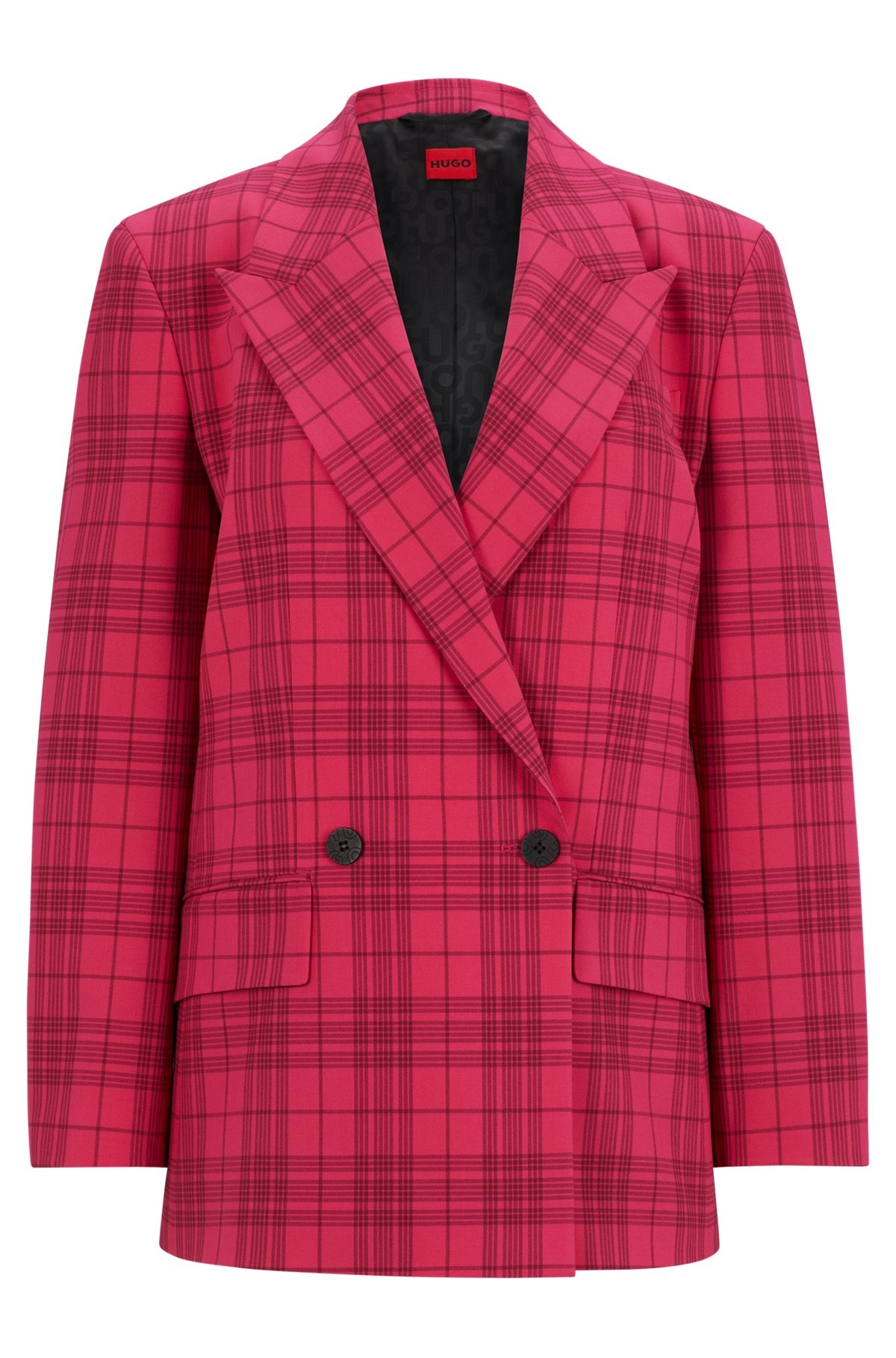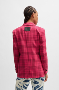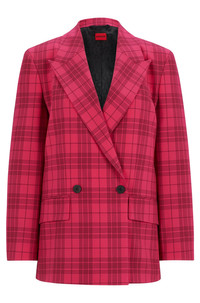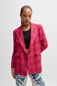SIZE AND FIT The model wears a size 4 and is 5'9" tall with a, 31" chest, 24" waist and 35" hips. DETAILS Akesi - 50517940 A statement jacket by HUGO Womenswear. Patterned with a check, this piece is cut to a slim fit in stretch material. Slim fit Peaked lapels Fastening top: Button closure Number of buttons: Double-breasted Welt chest pockets Pockets top: Flap pockets Button cuffs Back vent Fully lined Fit back length: 74 cm (29 inches) QUALITY & CARE INSTRUCTIONS Quality: 64% Polyester, 31% Viscose, 5% Elastane, Lining: 50% Viscose, 50% Polyester, Sleeve lining: 64% Viscose, 36% Polyester Do Not Wash Do Not Tumble Dry Iron Low Heat Do Not Bleach Reduced Dry Clean