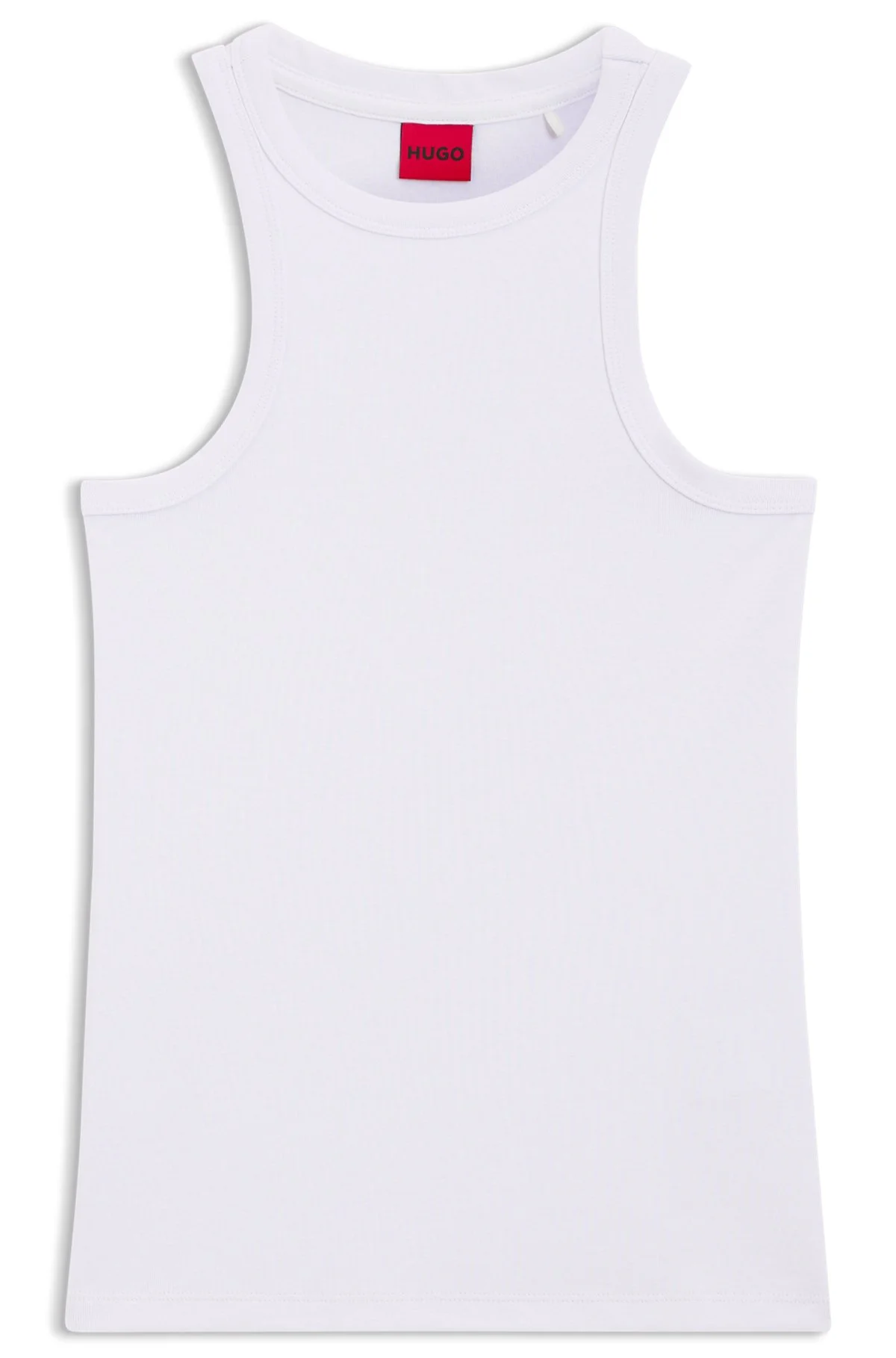 SIZE AND FIT The model wears a size S and is 5'9" tall with a, 29" chest, 23" waist and 34" hips. DETAILS The Plain Tank - 50515651 With a ribbed structure for a comfy fit, this HUGO Womenswear tank top is an essential basic. Slim silhouette. Stretch-cotton. Rear logo print. Slim fit Neckline: Crew neck Sleeveless QUALITY & CARE INSTRUCTIONS Do Not Bleach Machine Wash Cold Gentle Do Not Tumble Dry Reduced Dry Clean Iron Low Heat Quality: 66% Cotton, 29% Polyester, 5% Elastane