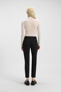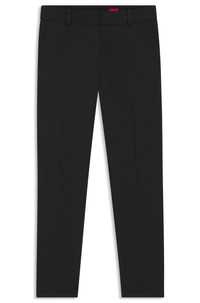 SIZE AND FIT The model wears a size 4 and is 5'9" tall with a, 29" chest, 23" waist and 34" hips. DETAILS Adaptable cropped trousers by HUGO Womenswear. This slim-fit pair is created in stretch material blended with virgin wool and features slits at the hems. Slim fit Regular rise Hook and zip closure Slim leg Crease Pockets bottom front: French pocket Pockets bottom back: Welt pocket Unlined Fit foot width: 32,0 cm (12.6 inches) Hetana - 50516132 QUALITY & CARE INSTRUCTIONS Quality: 84% Polyester, 15% Wool, 1% Elastane, pocketing: 100% Cotton Do Not Wash Do Not Bleach Reduced Dry Clean Iron Low Heat Do Not Tumble Dry