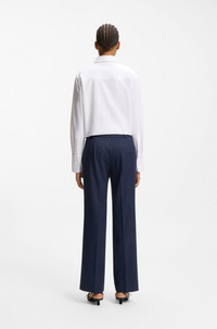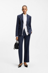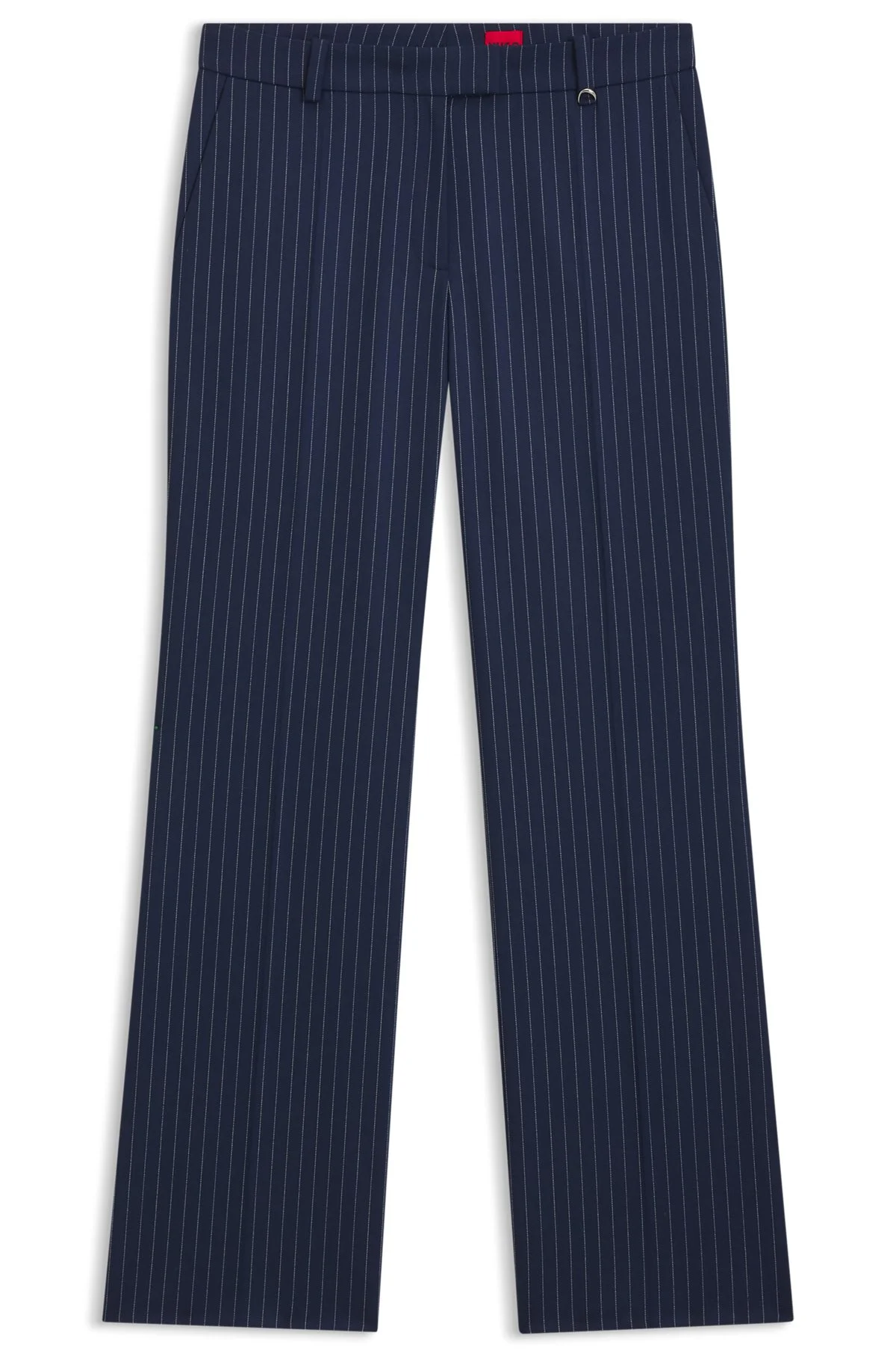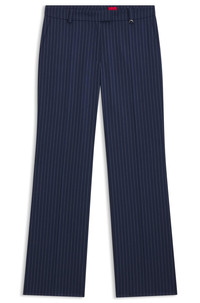 SIZE AND FIT The model wears a size 4 and is 5'10" tall with a, 29" chest, 24" waist and 35" hips. DETAILS Tailored to a streamlined, straight fit, these HUGO Womenswear trousers are patterned with a classic pinstripe. Stretch fabric for comfort. D-ring trim. Slim fit Regular rise Hook and zip closure Straight leg Crease Pockets bottom front: French pocket Unlined Fit foot width: 47,0 cm (18.5 inches) Hilando - 50554458 QUALITY & CARE INSTRUCTIONS Machine Wash Cold Gentle Do Not Bleach Iron Low Heat Material: 64% Polyester, 34% Viscose, 2% Elastane Reduced Dry Clean Do Not Tumble Dry