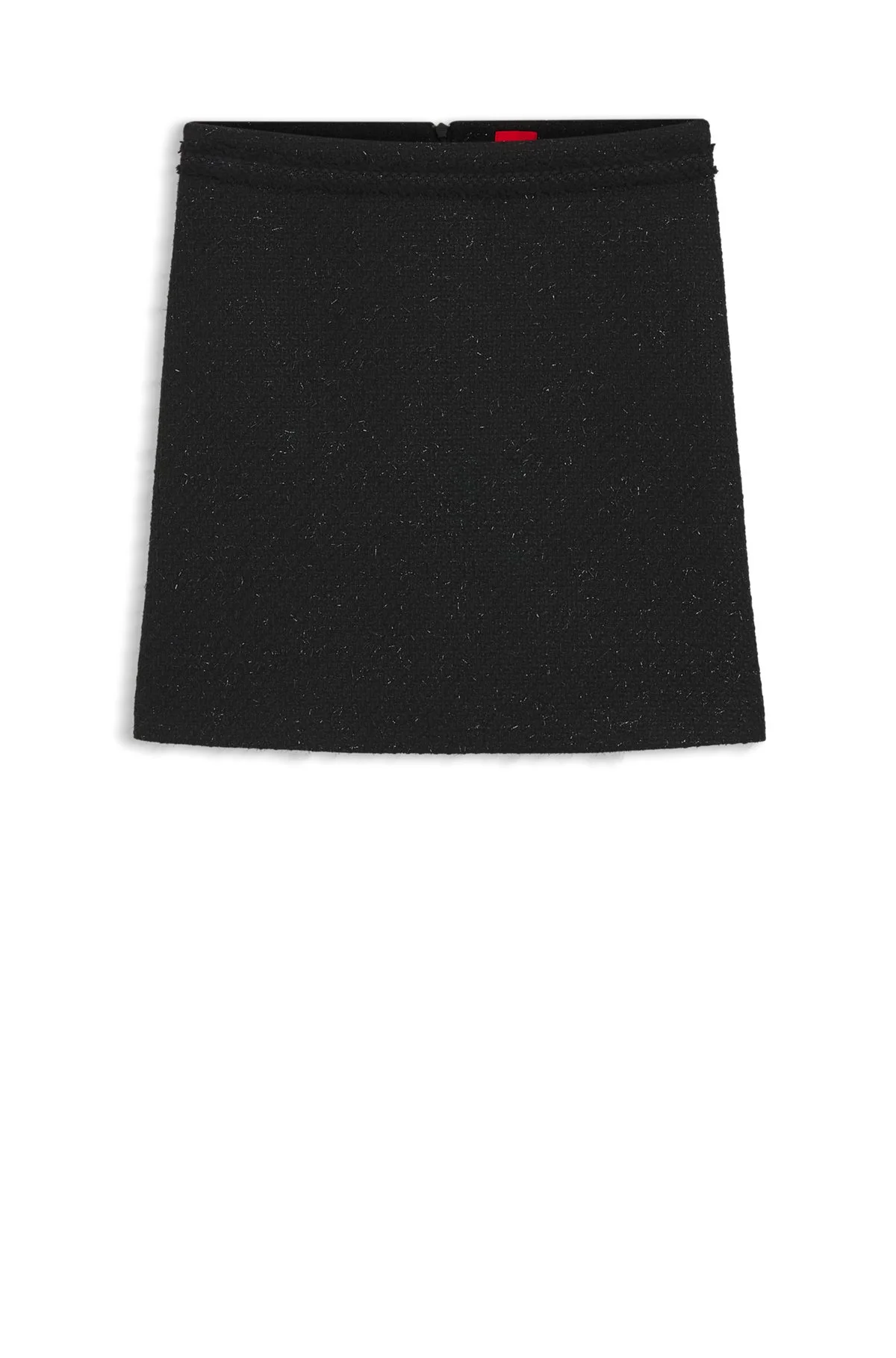 SIZE AND FIT The model wears a size 2 and is 5'10" tall with a, 32" chest, 24" waist and 35" hips. DETAILS This boucle HUGO Womenswear mini skirt adds elegance to any look. Modern chain-tape trim at the waist. Regular fit High rise Mini skirt Zip closure No vent Fully lined Short length Fit back length: 48 cm (19 inches) Rafransi - 50555908 QUALITY & CARE INSTRUCTIONS Do Not Bleach Reduced Dry Clean Do Not Wash Material: 31% Polyester, 37% Cotton, 3% Metallizing, 26% Polyacrylic, 3% Other fibres, Lining: 100% Polyester Iron Low Heat Do Not Tumble Dry