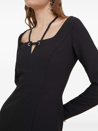 square-neck mini dress Highlights - Black - Square neck - Long sleeves - Cut-out detail Imported Composition Recycled Polyester 41%, Polyester 30%, Viscose 22%, Elastane 7% Washing instructions Read Manufacturer Guidelines