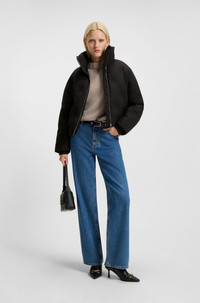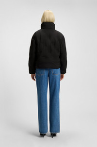 SIZE AND FIT The model wears a size S and is 5'10" tall with a, 32" chest, 24" waist and 35" hips. DETAILS With embossed stacked logos all over, this short HUGO Womenswear jacket is fresh and modern. Protective water-repellent finish. Branded zip puller. Soft knitted cuffs. Regular fit Stand collar Fastening top: Zip closure Pockets top: Seam pocket Ribbed cuffs Fully lined Short length Farinella-3 - 50547376 QUALITY & CARE INSTRUCTIONS Do Not Dry Clean Do Not Wash Material: 100% Polyester, Lining: 100% Polyamid, Filling: 100% Polyester, Cuff: 98% Polyamid, 2% Elastane Do Not Iron mild professional wet clean Do Not Tumble Dry Do Not Bleach