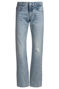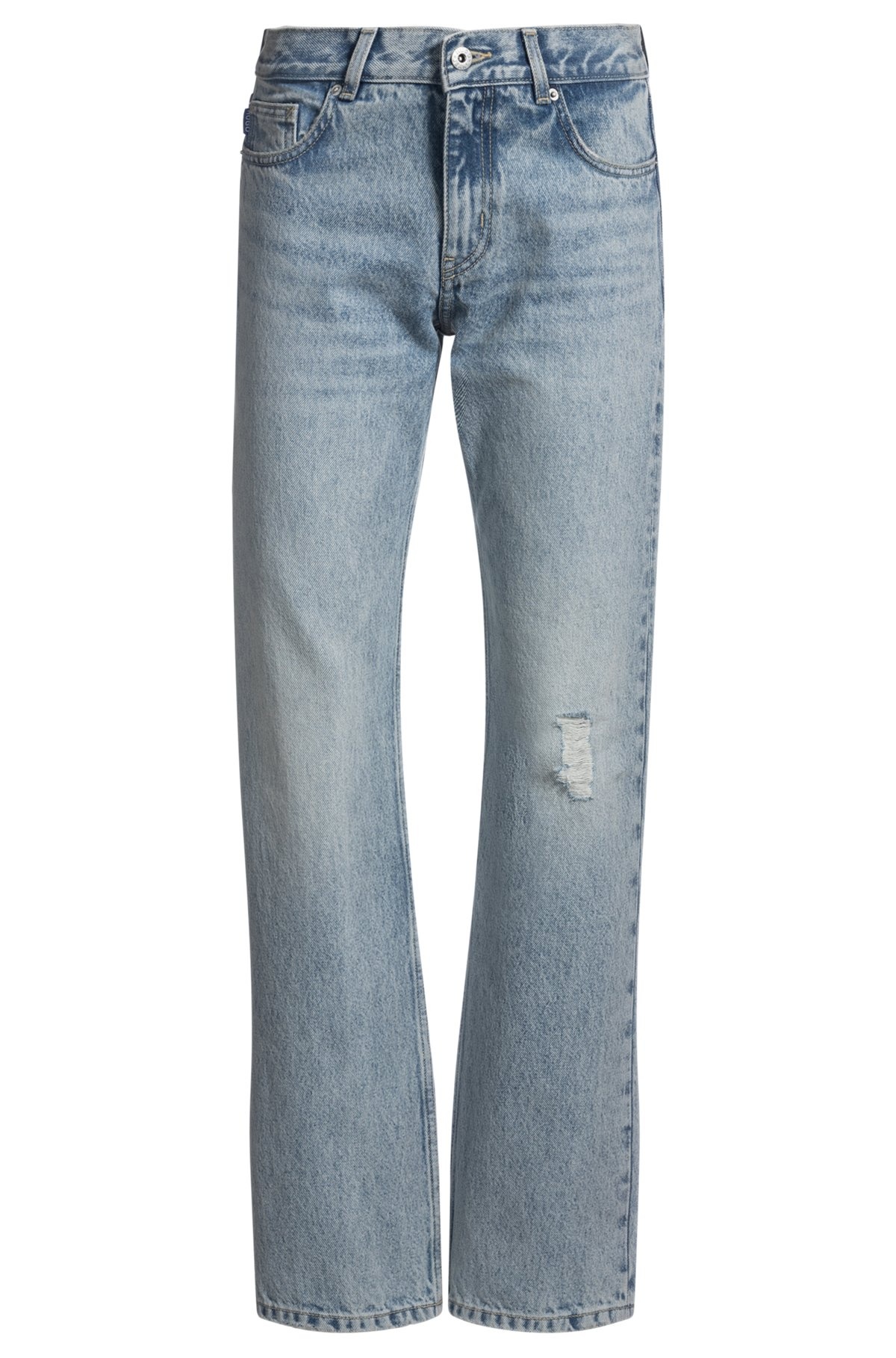 STRAIGHT-FIT JEANS IN BLUE DENIM WITH DISTRESSED DETAILING