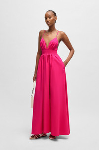 SIZE AND FIT The model wears a size 4 and is 5'8" tall with a, 31" chest, 23" waist and 34" hips. DETAILS Kapilu-1 - 50536456 Create effortless summer looks with this HUGO Womenswear maxi dress. Features a smocked high waistline. Crafted in lightweight cotton with logo trim on the strap. Regular fit Fastening top: Slip-on Sleeveless No cuffs Pockets top: Seam pocket No vent Side slit Fully lined Fit back length: 145 cm (57 inches) QUALITY & CARE INSTRUCTIONS Do Not Bleach Quality: 100% Cotton, Lining: 100% Cotton Iron Low Heat Reduced Dry Clean Do Not Tumble Dry Machine Wash Cold Gentle