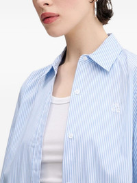 striped long-sleeve shirt Highlights - Blue - Pinstripe pattern - Point collar - Long sleeves - Button fastening - Curved hemline Imported Composition Cotton 100% Washing instructions Read Manufacturer Guidelines