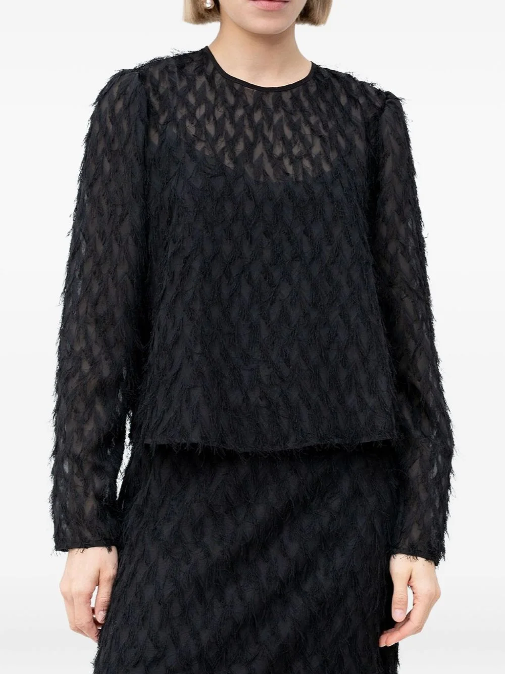 textured blouse Highlights - Black - Textured finish - Round neck - Long sleeves Imported Composition Fabric 100% Washing instructions Read Manufacturer Guidelines