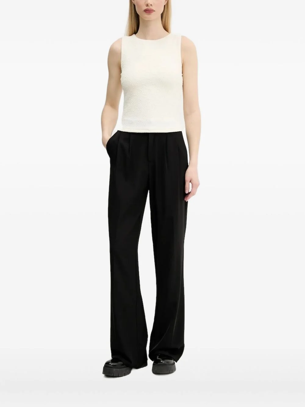 textured sleeveless tank top Highlights - Off-white - Textured weave - Round neck - Sleeveless - Rear zip fastening Imported Composition Polyester 90%, Elastane 10% Washing instructions Read Manufacturer Guidelines