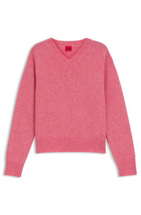 SIZE AND FIT The model wears a size S and is 5'9" tall with a, 29" chest, 23" waist and 34" hips. DETAILS Solanu - 50545092 In a regular fit for easy layering, this preppy HUGO Womenswear sweater is knitted in soft wool yarn. Ribbon logo detail at the back. QUALITY & CARE INSTRUCTIONS Reduced Dry Clean Do Not Bleach Do Not Tumble Dry Do Not Wash Do Not Iron Quality: 75% Virgin wool, 25% Polyamid