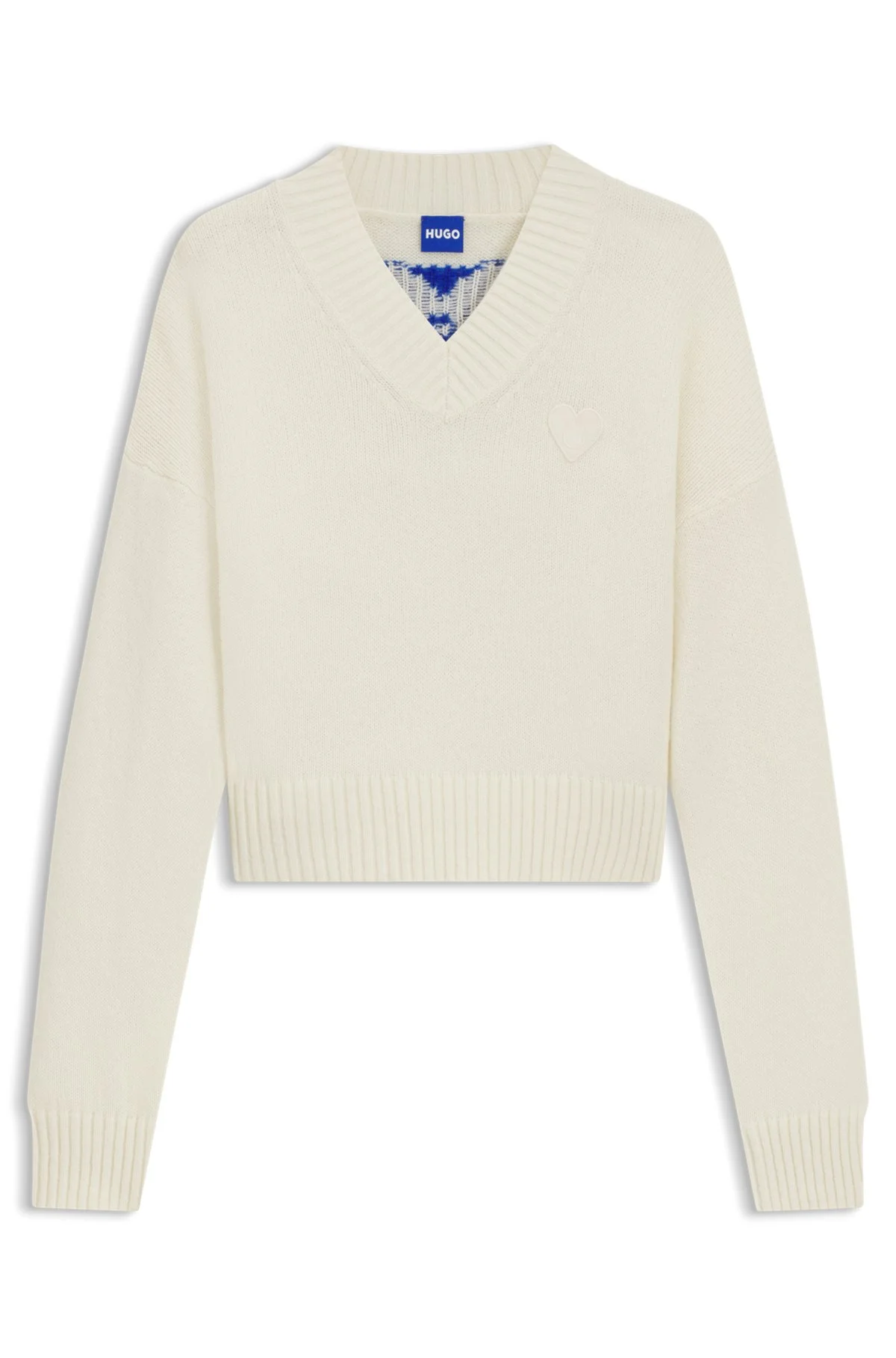 V-NECK SWEATER WITH REAR HAPPY HUGO HEART