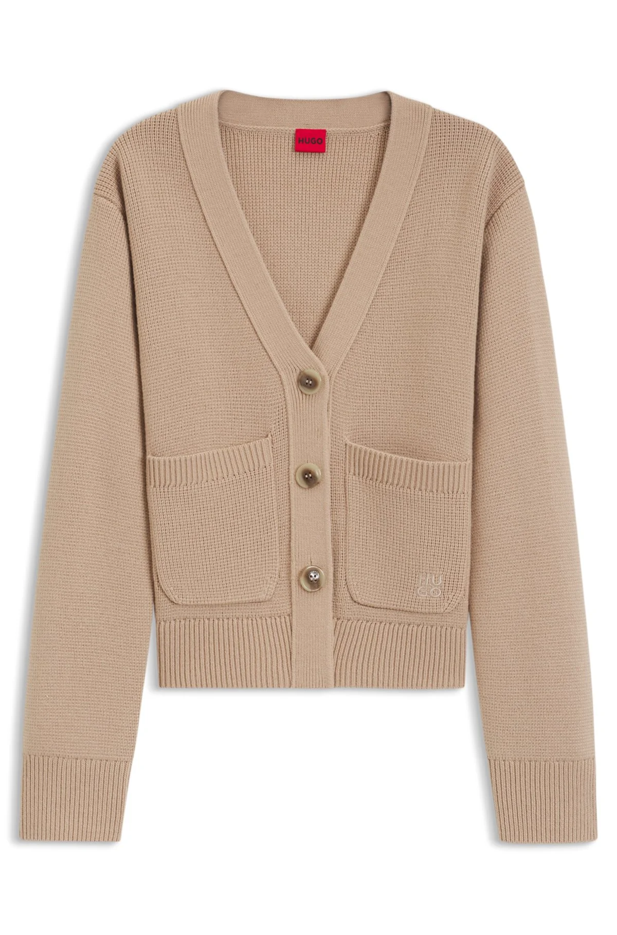 SIZE AND FIT The model wears a size S and is 5'8" tall with a, 31" chest, 23" waist and 34" hips. DETAILS Selosina - 50545141 With a fitted silhouette offset by wider-cut sleeves, this HUGO Womenswear cardigan makes a modern layer. Tonal embroidered stacked logo. Wool-blend yarn. Fit back length: 54 cm (21 inches) QUALITY & CARE INSTRUCTIONS Reduced Dry Clean Machine Wash Cold Gentle Quality: 60% Virgin wool, 40% Polyacrylic Do Not Tumble Dry Do Not Bleach Iron Low Heat