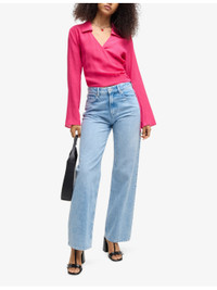 Wrap-Over Long-Sleeve Woven Top