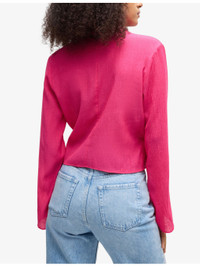PRODUCT DETAILS - HUGO woven top - 85% viscose, 15% polyamide - Self-tie fastening - Regular fit, point collar, V-neck, long fluted sleeves, wrap over front with self-tie - Machine wash at 30°C - Lightweight, non-stretch Ref: R04359791