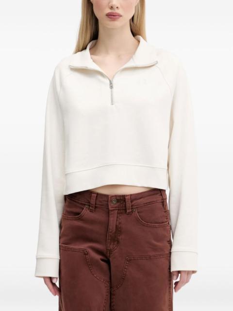 zip-neck sweatshirt Highlights - Pale yellow - Half zip fastening - Raglan sleeves - High neck - Cropped length Imported Composition Cotton 100% Washing instructions Read Manufacturer Guidelines