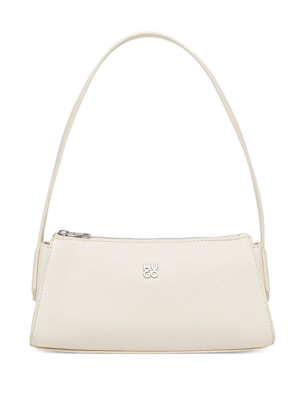 zip-top shoulder bag Highlights - Off-white - Long top handle - Top zip fastening - Logo plaque - Rectangular shape Imported Composition Lining: Polyester 100% Outer: Recycled Polyester 60%, Polyurethane 40% SIZE & FIT Measurement DEPTH 2.36 in(6 cm) HEIGHT 4.72 in(12 cm) WIDTH 9.84 in(25 cm)