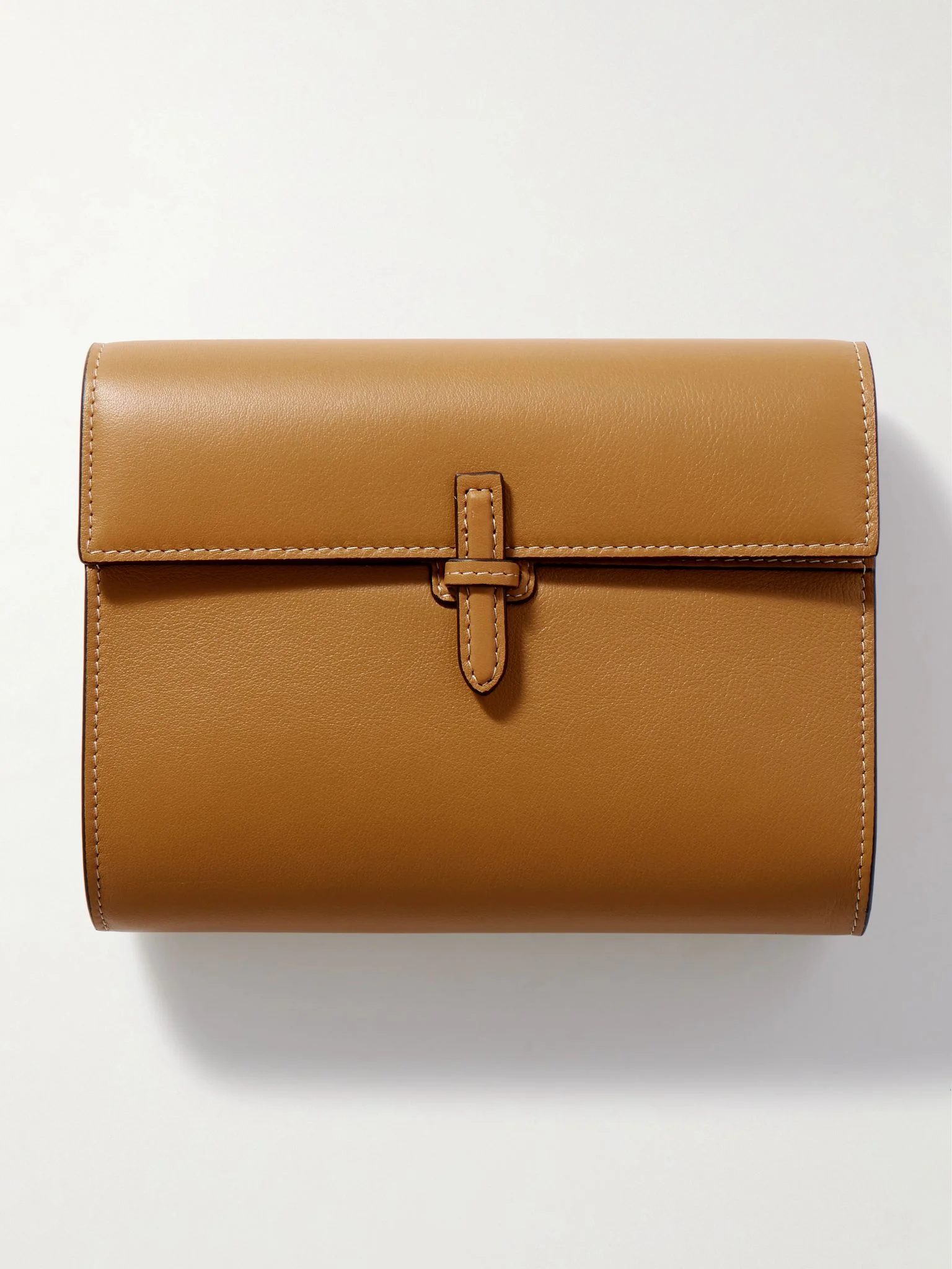 All of Hunting Season's bags are handcrafted using centuries-old techniques passed down through generations. Made from supple leather, this clutch is outlined with topstitching and has just enough space inside for your phone, keys and cards. Details & Care - Camel leather (Cow) - Internal slip pocket - Twill lining - Tab-fastening front flap - Designer color: Caramel - Weighs approximately 0.7lbs/ 0.3kg