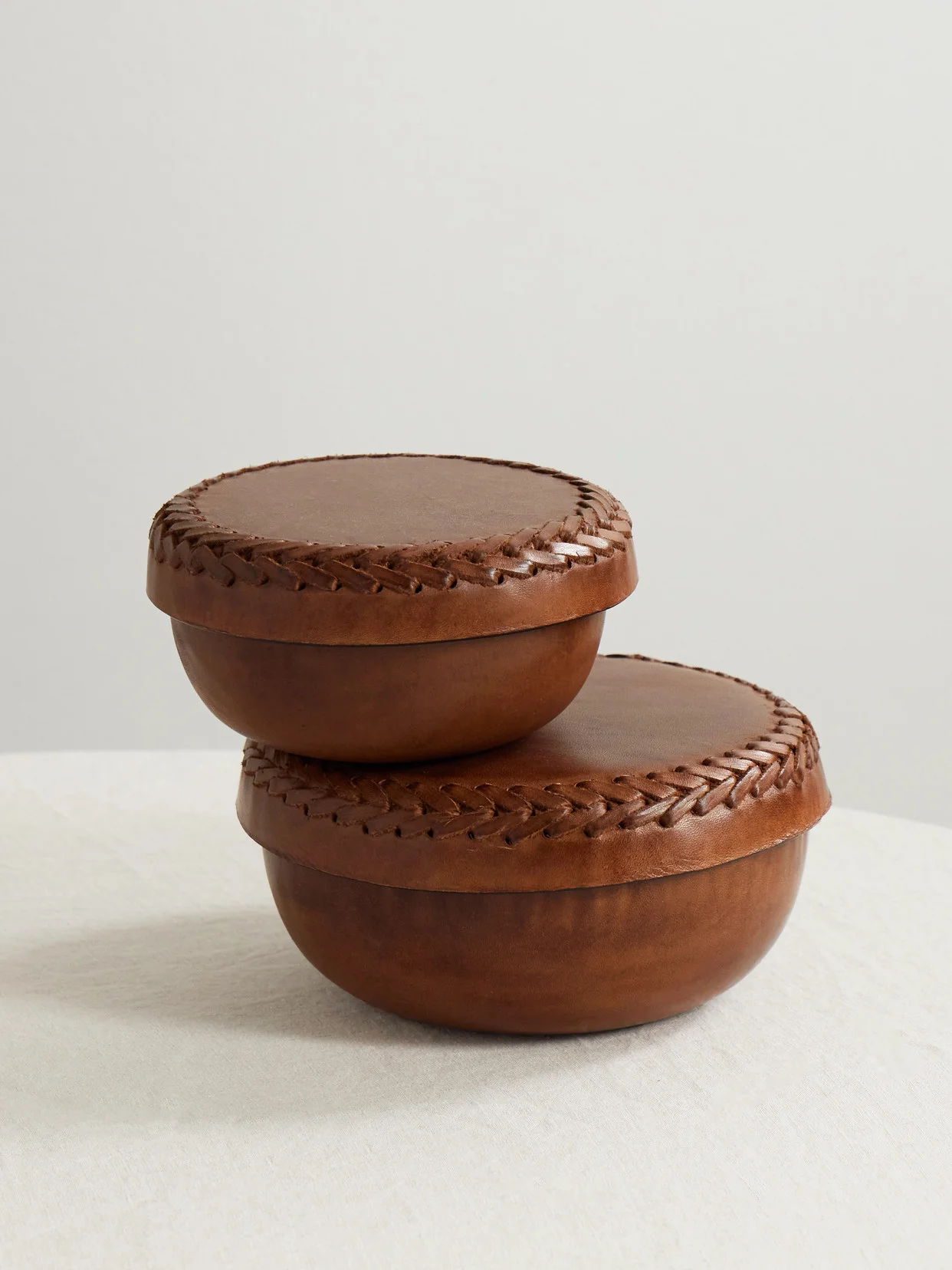 Set Of Two Whipstitched Leather Boxes