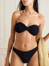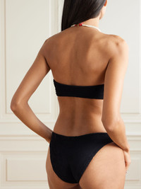 Georgiana Huddart's former boyfriend bought her a Hunza mini skirt from a vintage boutique in Berlin - she loved it so much that she became obsessed with the idea of re-launching the brand with its original Creative Director, Peter Meadows. Made in London, this Hunza G bikini is cut from stretchy seersucker and fits every figure. It's free from hardware, so will feel comfortable whether you're lying on a beach towel or poolside lounger. Size & Fit - Comfortably fits those who are between a size XSmall-XXLarge and all body shapes - Light bust support - Mid-rise briefs with medium coverage Details & Care - Black seersucker - Slips on - 88% nylon, 12% elastane - Hand wash - Lotion, sunscreen, oil and chlorine can cause discoloration of this item; this is not a manufacturing defect. Please follow care instructions to keep your swimwear in the best condition