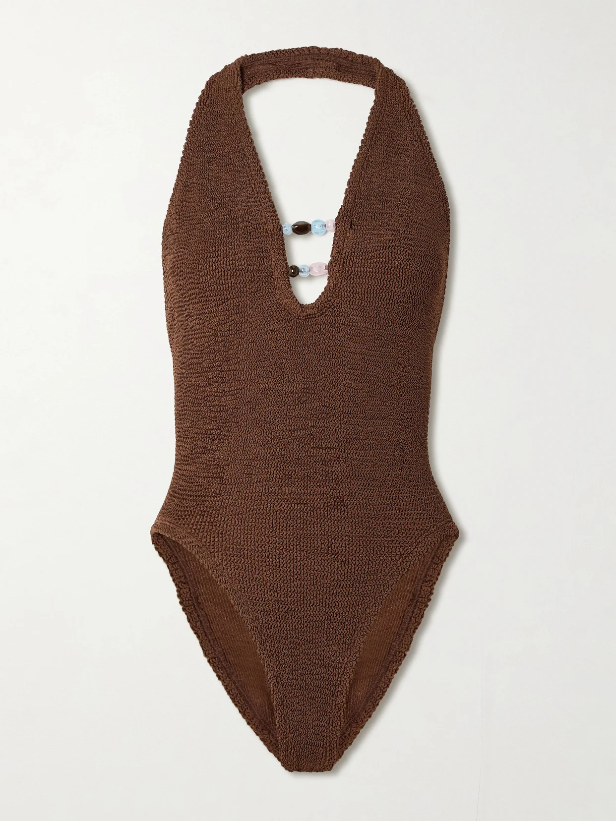 Hunza G's 'Adriana' swimsuit is made from the label's Original Crinkle™ fabric and features a '90s-style halter neck. It's embellished with pretty beads that'll really glisten in the sunshine.
