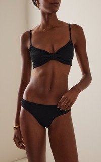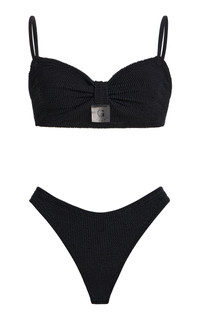 Hunza G first found fame in the '90s for the cutout mini worn by Julia Roberts in Pretty Woman — it became a must-have for women everywhere. Now under the direction of Georgiana Huddart, the London-based label is having a major moment with their swimsuits and bikinis sustainably made from signature seersucker. Spaghetti straps and bow-inspired ruching lend feminine detail to the ‘Alicia’ bikini, crafted from Hunza G’s signature seersucker fabrication. PRODUCT DETAILS - Resort '26 - Slip on - Composition: 97% Polyamide 3% Elastane - Designer color: Black - Hand wash - Imported SIZE & FIT - Our model is 5'10" with a 30" bust, 24" waist, and 34" hip - One size. This style comfortably fits those who are between a US 2-12