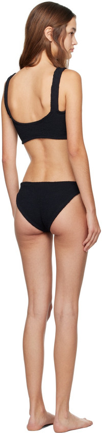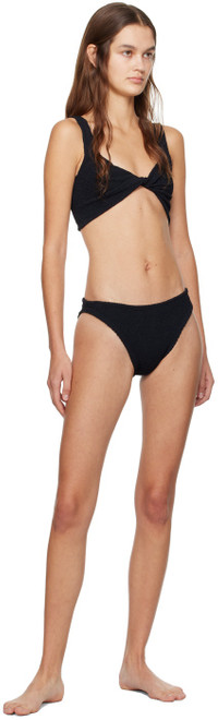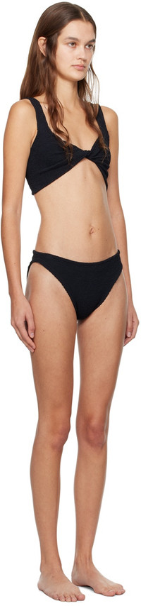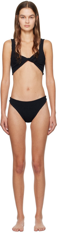 Shirred stretch nylon jersey bikini top. · Scoop neck · Twisted accent at chest · Fixed shoulder straps · Unlined Shirred stretch nylon jersey bikini bottoms. · Low-to-high rise · Unlined This product uses Seamless Crinkle™ Technology. Fits US sizes 2-12. Supplier color: Black