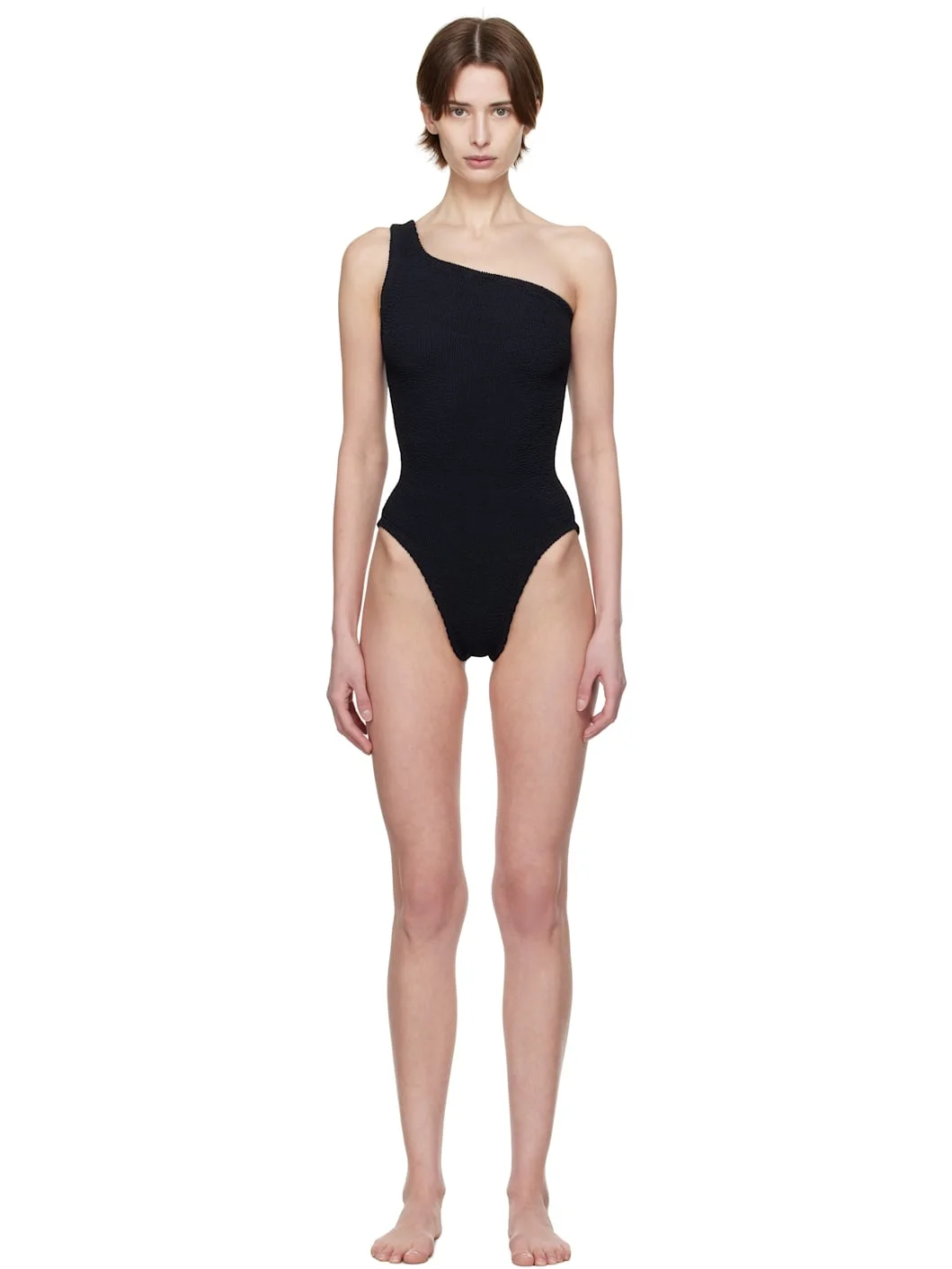 Shirred stretch nylon jersey one-piece swimsuit. · Single-shoulder construction · Unlined This product uses Original Crinkle™ Technology. Fits US size 2-12. Supplier color: Black 97% polyamide, 3% elastane. Made in Morocco 251431F103040