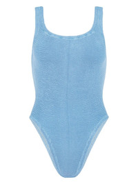 Square Neck seersucker swimsuit Hunza G says its cornflower-blue Square Neck swimsuit has the brand's ‘’80s heritage rooted at its core’ – it’s made from the same signature crinkle-stretch seersucker that debuted in the 1984. It’s knit, dyed and processed in the brand’s UK studio using a made-to-order process to avoid overproduction. Highlights - Cornflower blue - Seersucker texture - Stretch-design - Crinkled finish - Square neck - Wide shoulder straps - Low back - Be mindful to try on swimwear over your own garments. Made in United Kingdom Composition Nylon 88%, Lycra 12% SIZE & FIT Measurement BUST 21.29 in(54.1 cm) HIPS 18.89 in(48 cm) Washing instructions Hand Wash