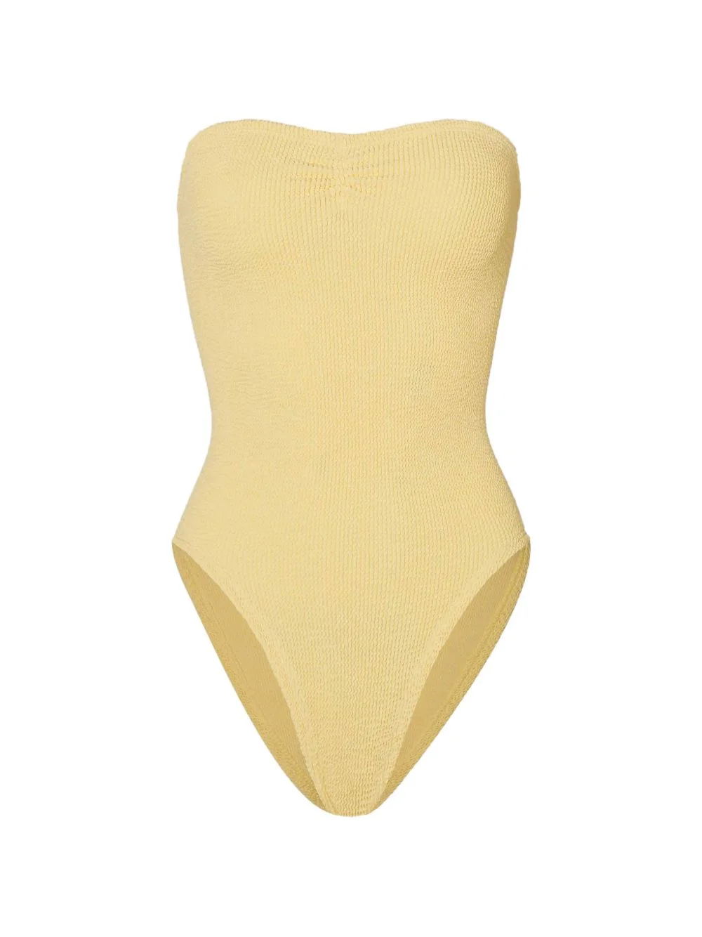 Brooke swimsuit Highlights - Yellow - Textured finish - Bandeau style - High-cut leg - Be mindful to try on swimwear over your own garments. Made in United Kingdom Composition Polyamide 97%, Elastane 3% Washing instructions Machine Wash