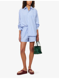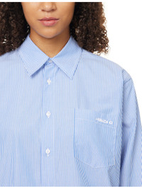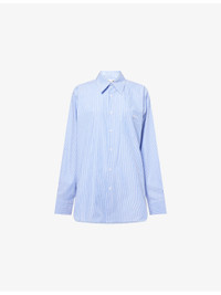 PRODUCT DETAILS - Hunza G cotton-poplin shirt - 100% cotton - Exposed button fastening at front - Oversized, spread collar, long sleeves, buttoned cuffs, patch pocket and brand embroidery at front, straight yoke and pleat at back, all-over striped print, curved hem - Machine wash at 30°C - Made in Italy - True to size - Model is 5ft 10in/1.78m and wears a size small - Lightweight, slight stretch Ref: R04458702