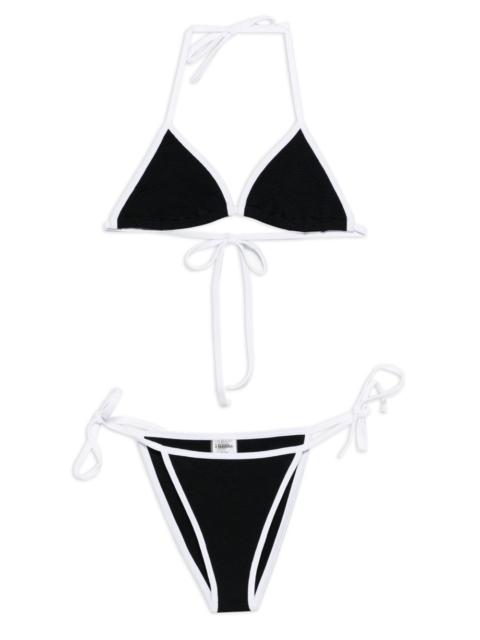 Gina bikini Highlights - Black - Triangle top - Tie fastening - Low-rise briefs - Be mindful to try on swimwear over your own garments. Imported Composition Polyamide 97%, Elastane 3% Washing instructions Machine Wash