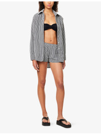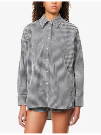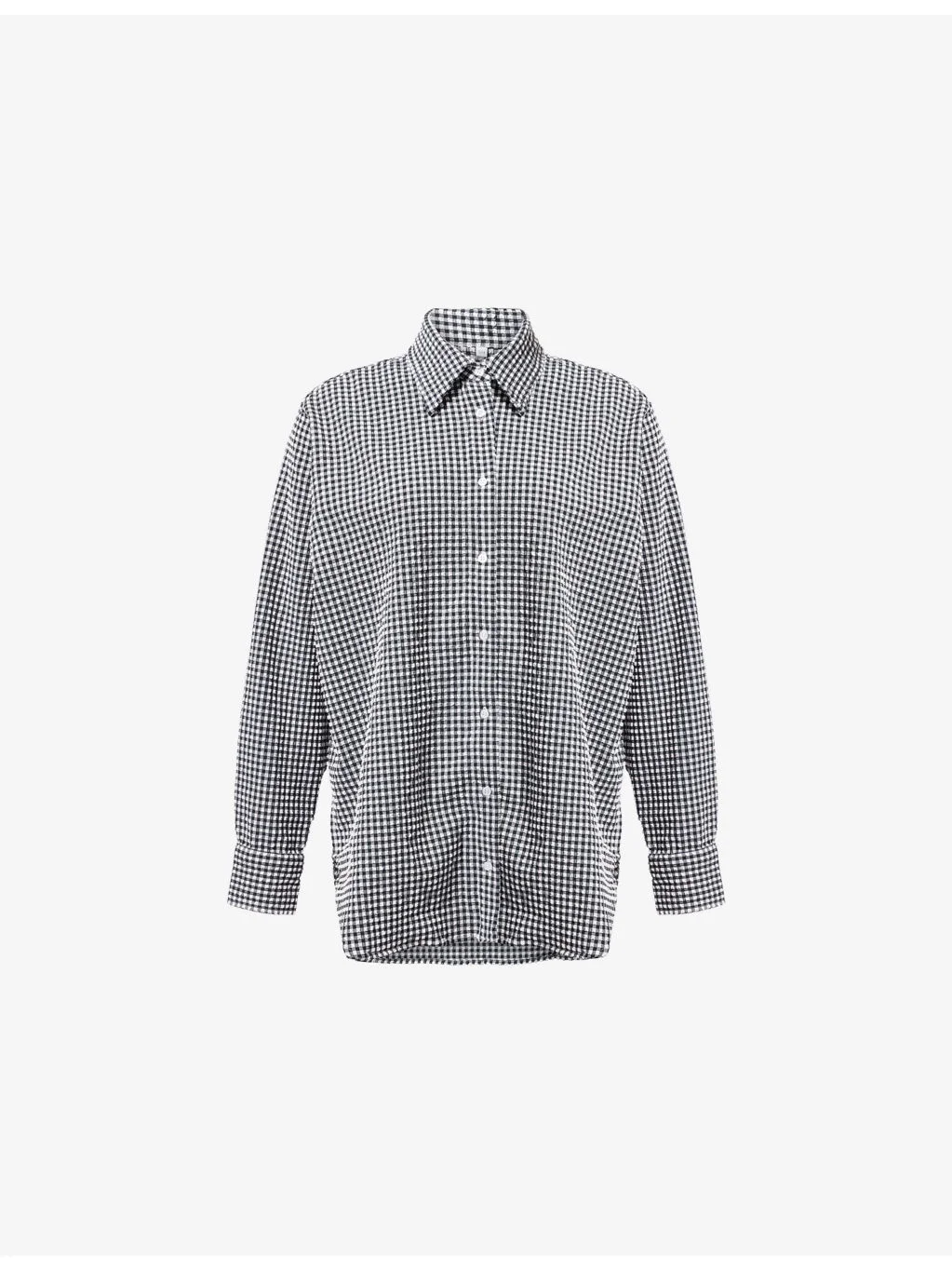 PRODUCT DETAILS - Hunza G woven shirt - 91% polyester, 9% elastane - Button fastening - Relaxed fit, collar, long sleeves, buttoned cuffs, patch pocket at chest, gingham pattern - Machine wash cold - True to size - Model is 5ft 10in/1.78m and wears a size small - Lightweight, slight stretch Ref: R04458699