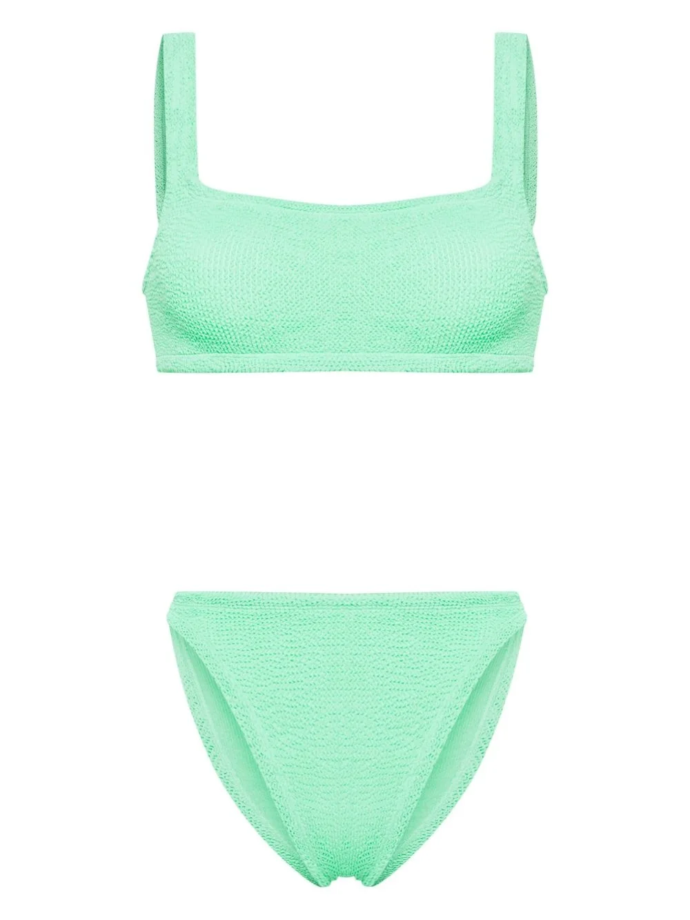 Xandra crinkled bikini set Highlights - Fluorescent green - Crinkled finish - Square neck - Sleeveless - Square open back - Elasticated underband - High-waisted - Elasticated waistband - High cut - Full lining - Set of two - Be mindful to try on swimwear over your own garments. Imported Composition Polyamide 97%, Elastane 3% SIZE & FIT Measurement BUST 15.74 in(40 cm) HIPS 20.47 in(52 cm)