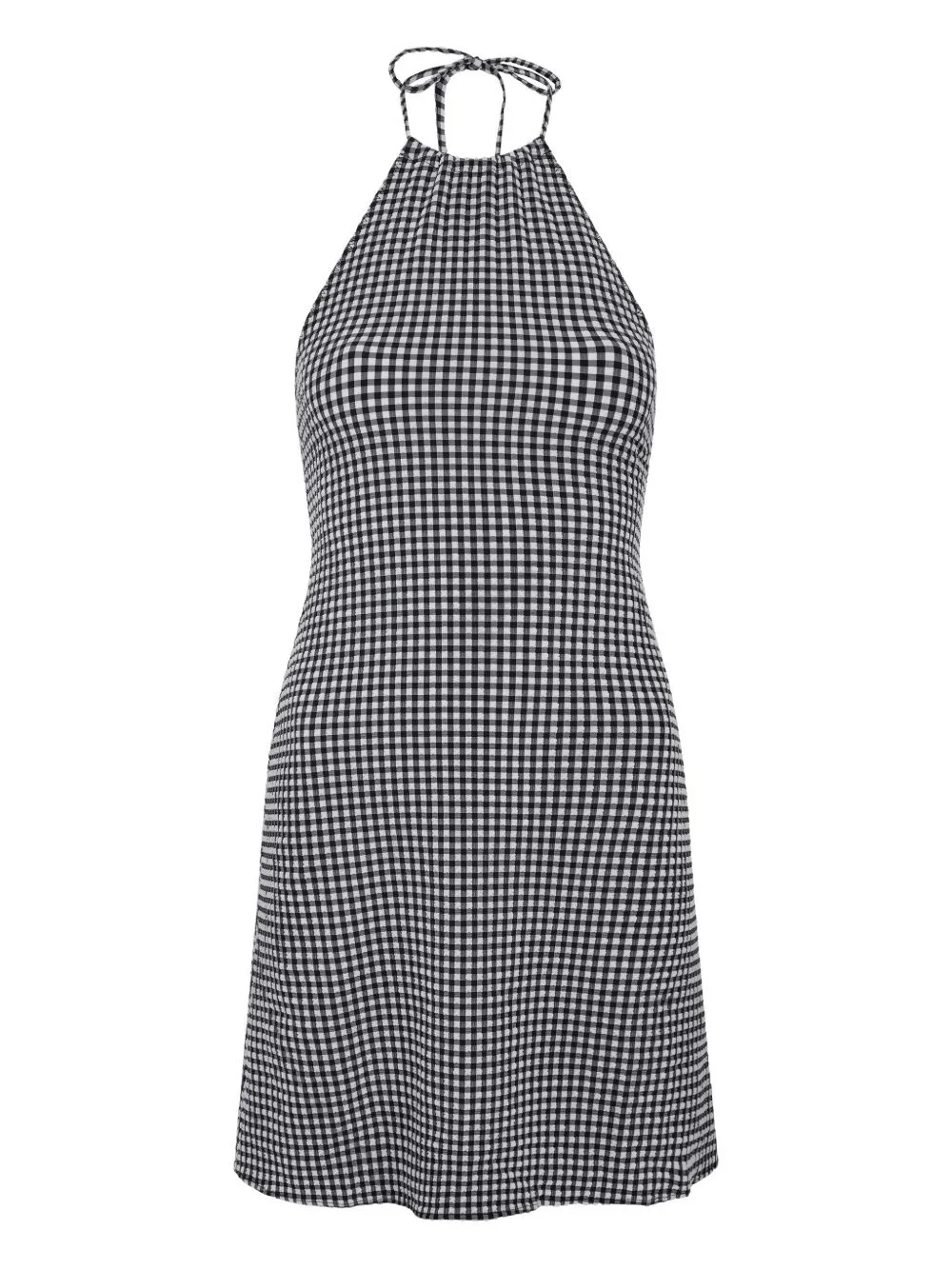 halterneck mini dress Highlights - Black - Gingham check pattern - Halterneck tie fastening - Open back - Sleeveless Imported Composition Polyester 91%, Spandex/Elastane 9%