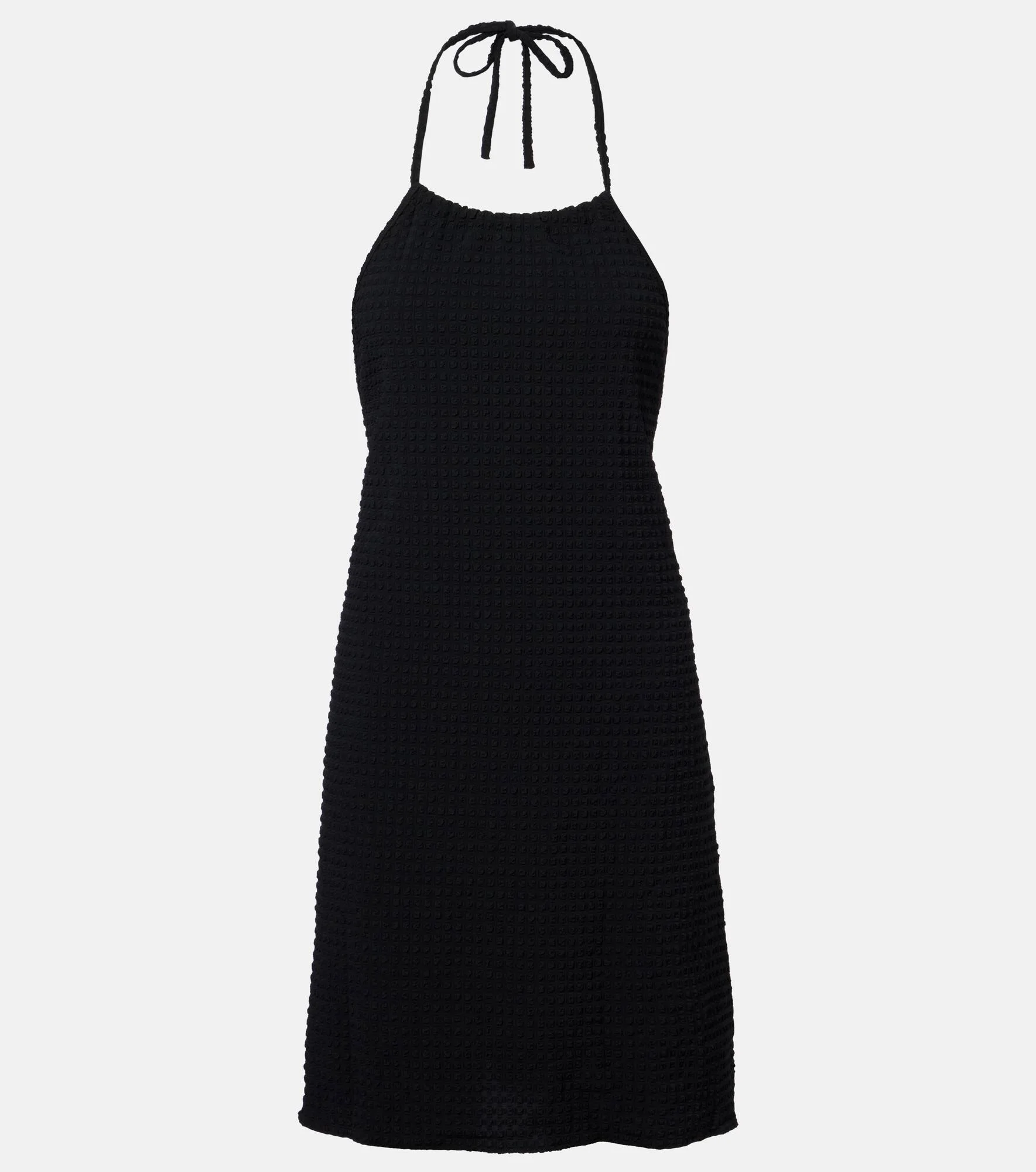 This halterneck minidress from Hunza G features an open back, adjustable ties, and a waffle-knit construction. Made from lightweight seersucker, the black design is made for all-day wear. Product Details - Material: 91% polyester, 9% elastane - Care instructions: machine wash at 30 degrees - Made in Morocco - Color: black - Designer color name: Black - Item color: black - Self-tie neck - Item number: P01143234