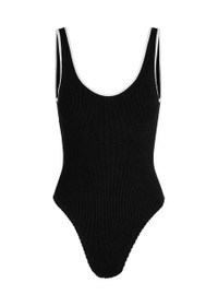 Info & Care Hunza G seersucker swimsuit Scoop-neck, elasticated, low back, contrasting trim 97% polyamide, 3% elastane Hand wash Size & Fit High-leg cut; One size; will comfortably wear a size UK6-UK16