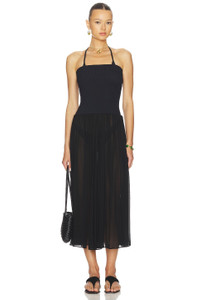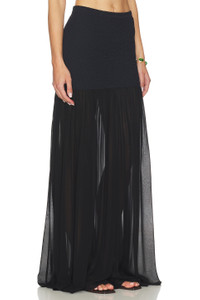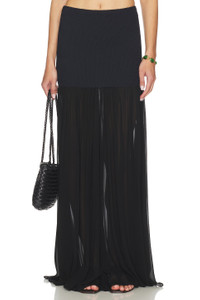 - Self: 97% polyamide 3% elastane Contrast fabric: 100% viscose - Made in Morocco - Machine wash - Unlined - Pull-on styling - Lightweight woven fabric - Neckline to hem measures approx 43" in length - Revolve Style No. HUNG-WQ9 - Manufacturer Style No. Hybrid Skirt