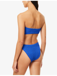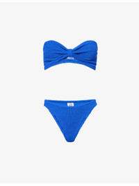PRODUCT DETAILS - Hunza G bikini set - 88% polyamide, 12% elastane - Slips on - Top: - Strapless, soft moulded cups, all-over plisse texture - Bottoms: - Mid-rise, elasticated waistband, high leg, all-over plisse texture, slight-coverage at back - Hand wash - Made in England - True to size - Model is 5ft 8in /1.73m and wears a size 5 - Lightweight, slight stretch Ref: R03873620-S