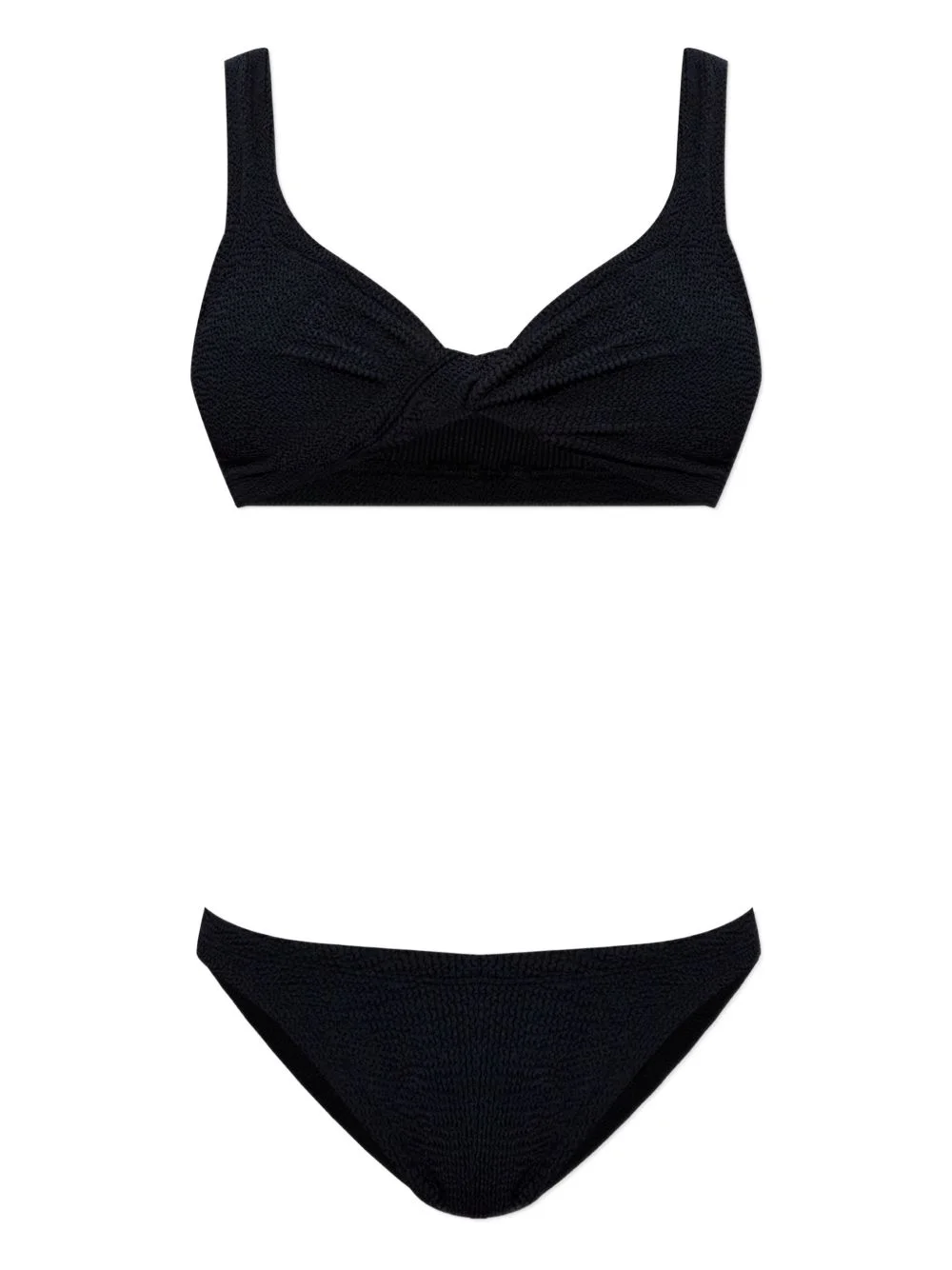 Juno coverage crinkle bikini Highlights - Black - Crinkle texture - Briefs - Top - Shoulder straps - Knot detail - Be mindful to try on swimwear over your own garments. Made in United Kingdom Composition Polyamide 97%, Elastane 3% Washing instructions Read Manufacturer Guidelines