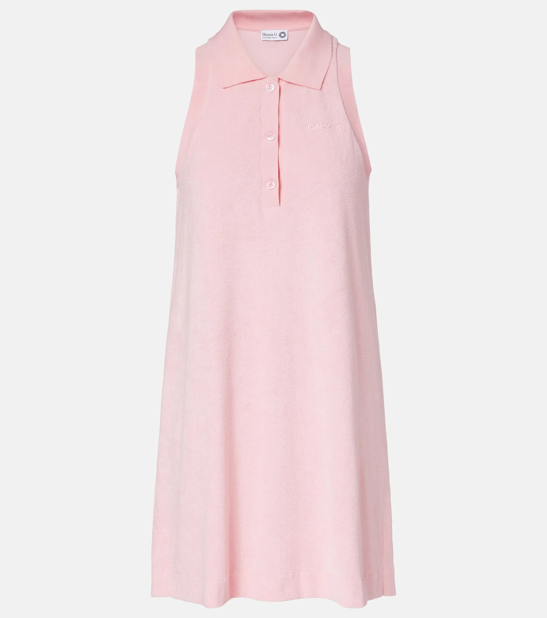 Add a preppy touch to your resort edit with this tennis-style polo dress from Hunza G. The design is crafted from absorbent cotton terry, boasts a relaxed fit, and is finished with subtle logo embroidery. Product Details - Material: 100% cotton - Care instructions: machine wash at 30 degrees - Made in Portugal - Color: pink - Designer color name: Pink - Collar: polo collar - Closure: partially buttoned front - Side slits - Item number: P01164271