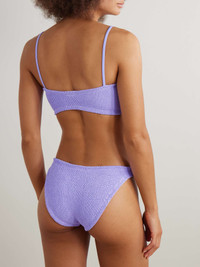 EDITORS'NOTES The faux pearl hoops on Hunza G’s ‘Misty’ bikini are inspired by the natural treasures found in the ocean. Made from the label’s signature 'Crinkle™' seersucker, it has bandeau-style cups framed by slim straps and high-cut briefs. The lilac shade is such a pretty choice. SIZE & FIT Model measurements: - Comfortably fits those who are between a size XSmall-XXLarge - Mid-rise, high-cut style with medium brief coverage - Model is 175cm/ 5'9", bra size 32C and normally wears a size Small - Bust: 80cm/ 31.5" - Waist: 60cm/ 24" - Hip: 89cm/ 35" DETAILS & CARE - Lilac seersucker - Slips on - 97% polyamide, 3% elastane - Machine wash at 30° with similar colors - Lotion, sunscreen, oil and chlorine can cause discoloration of this item; this is not a manufacturing defect. Please follow care instructions to keep your swimwear in the best condition