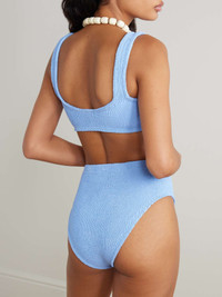 EDITORS'NOTES EXCLUSIVE AT NET-A-PORTER. Hunza G's bikini sets look so great together, but you can mix and match with styles in your collection to create unique combinations, too. This 'Nadine' bikini is made from the brand's signature 'Crinkle™' seersucker. It's free from fastenings for comfortable sunbathing. SIZE & FIT Model measurements: - Comfortably fits those who are between a size XSmall-XXLarge - Model is 175cm/ 5'9" and normally wears a size XSmall - Bust: 84cm/ 33” - Waist: 65cm/ 25.5” - Hip: 91cm/ 36” DETAILS & CARE - Light-blue seersucker - Slips on - 97% polyamide, 3% elastane - Hand wash - Lotion, sunscreen, oil and chlorine can cause discoloration of this item; this is not a manufacturing defect. Please follow care instructions to keep your swimwear in the best condition - Designer color: Cornflower