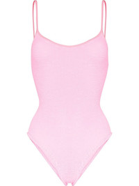 Pamela crinkle swimsuit Highlights - Pink - Stretch-design - Crinkled finish - Square neck - Spaghetti straps - Be mindful to try on swimwear over your own garments. Made in United Kingdom Composition Nylon 96%, Lycra 4% SIZE & FIT Model measurements Height 5 ft 9 in(1.75 m) Bust/Chest 39.76 in(101 cm) Hips 44.48 in(113 cm) Waist 31.1 in(79 cm) Measurement BUST 15.74 in(40 cm) LENGTH 25.59 in(65 cm) WAIST 14.17 in(36 cm) FittingInformation This is a one size item Made with a mid-weight stretch fabric Washing instructions Hand Wash