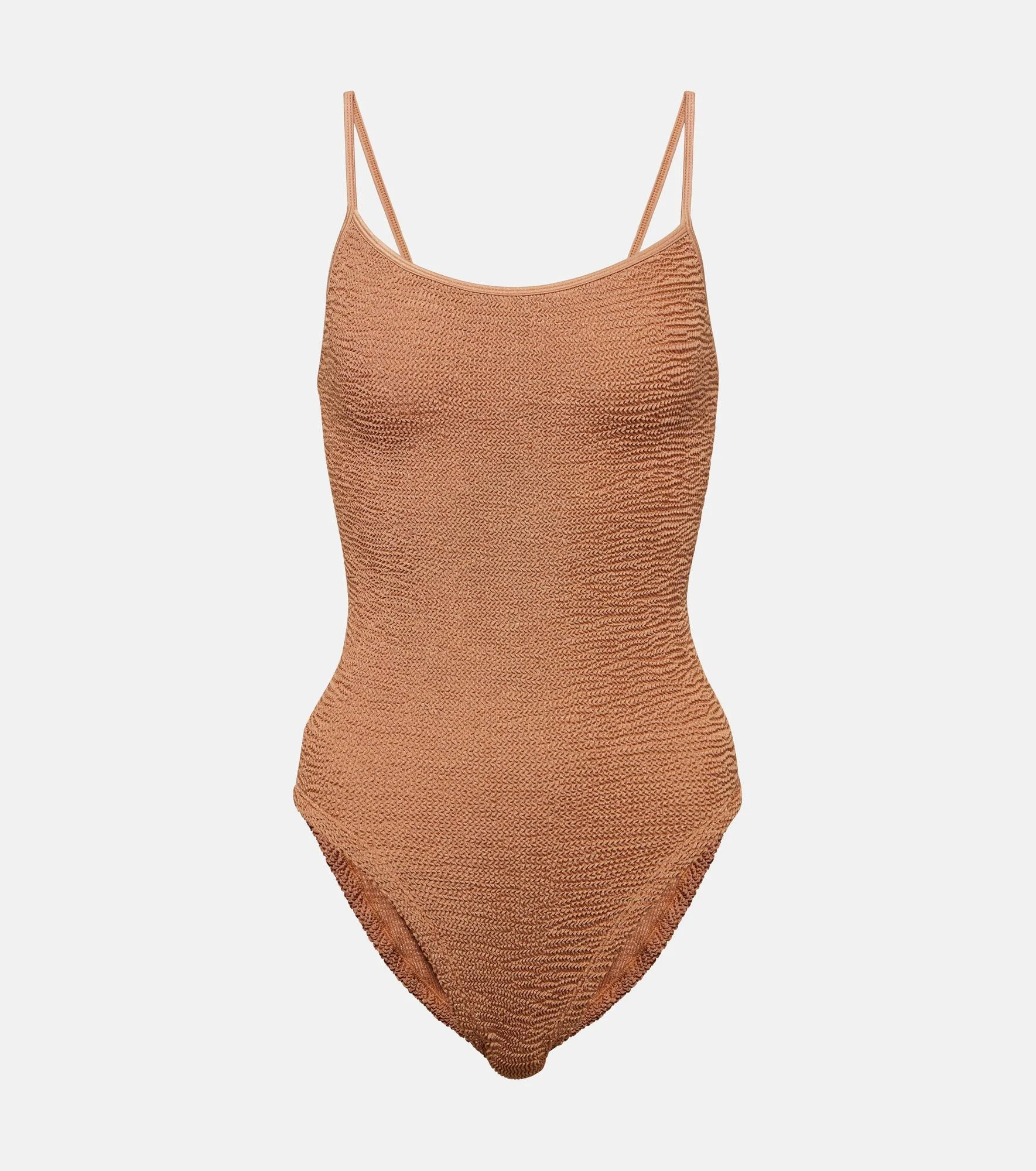 Product Details - Material: 96% nylon, 4% elastane - Made in Morocco - Designer color name: Metallic Cocoa - Care instructions: hand wash - Item number: P00925851 Size & Fit - True to size - One size: perfect fit for sizes XS-L - High-cut leg - One size - Unpadded Top